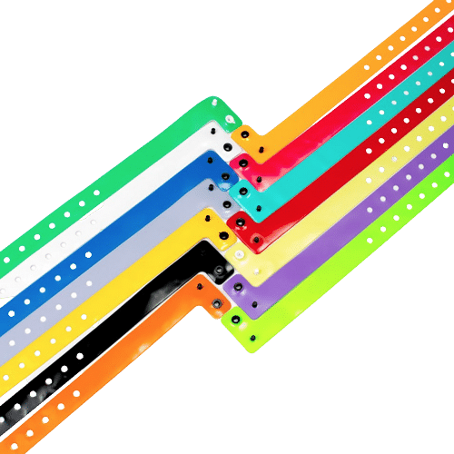 Такие браслеты легко крепятся на запястье. Одноразовая застежка не предусматривает повторного одевания, гарантируя защиту от мошенников.